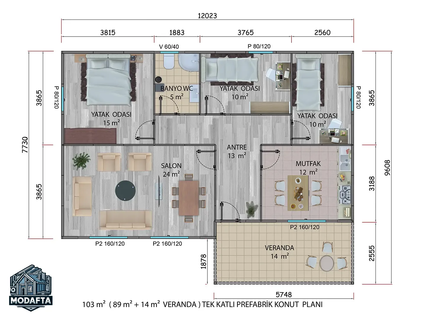 Prefabrik yapılarımız istenilen ölçü ve büyüklükte yapılabilmektedir. Özellikle konutlarda mimar ve mühendislerce hazırlanmış her biri yüksek konfor ve ergonomi içeren hazır tasarımlar müşterilerimizce yoğun talep ve beğeni görmektedir. Metrekarelerine göre 1+1’den başlayarak 3+1’e kadar değişik kullanımlar için çok sayıda planda üretim yapılmaktadır.