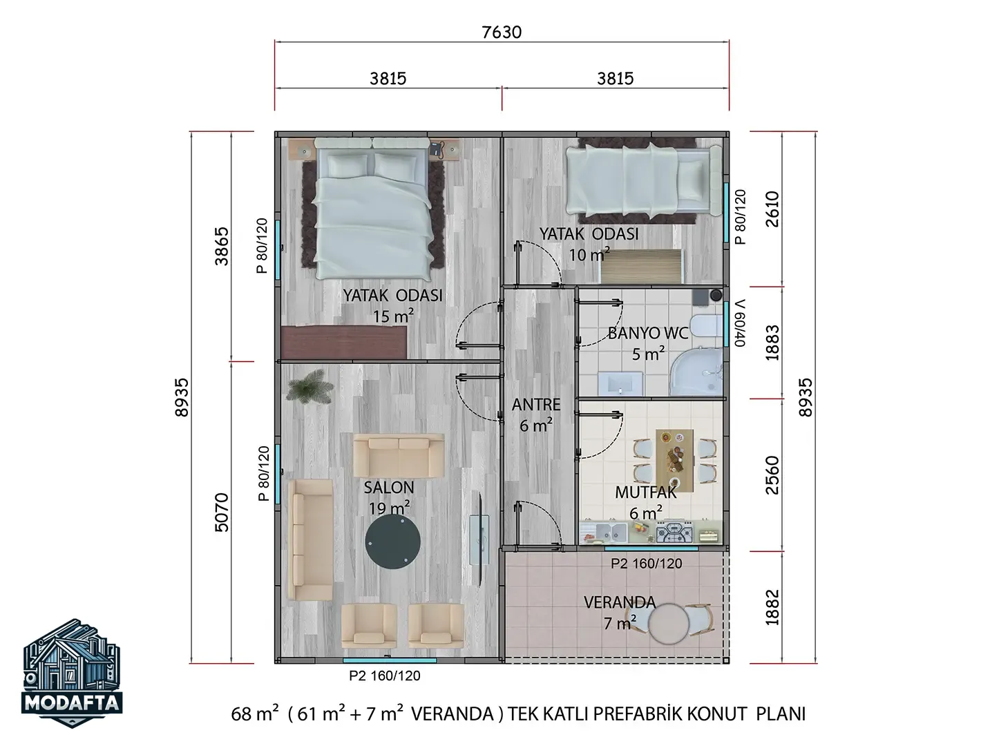 68 m² Prefabrik Ev