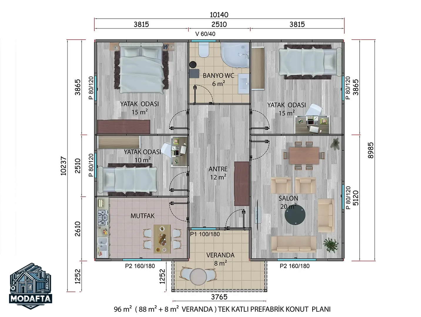 96 m² Prefabrik Ev