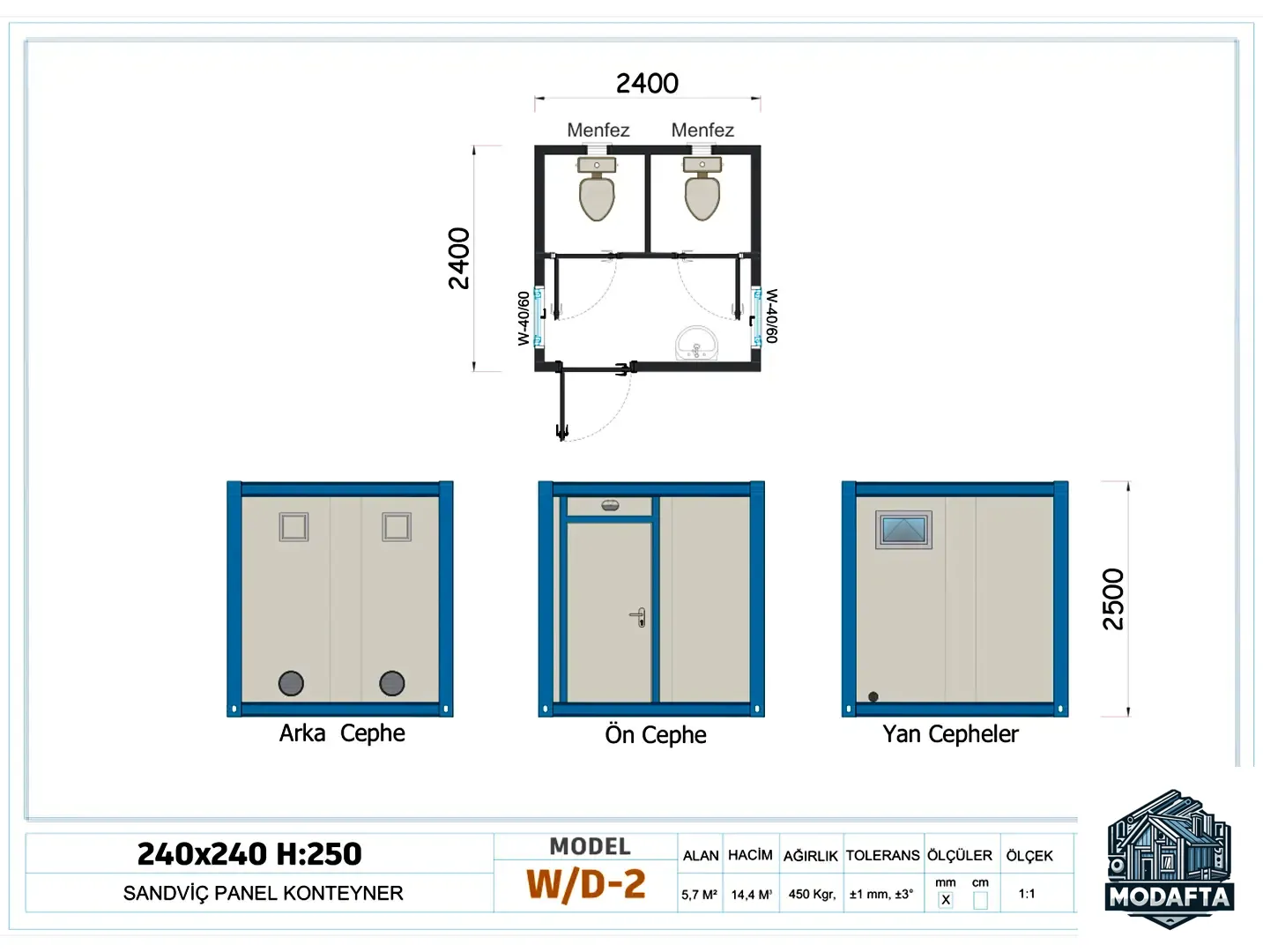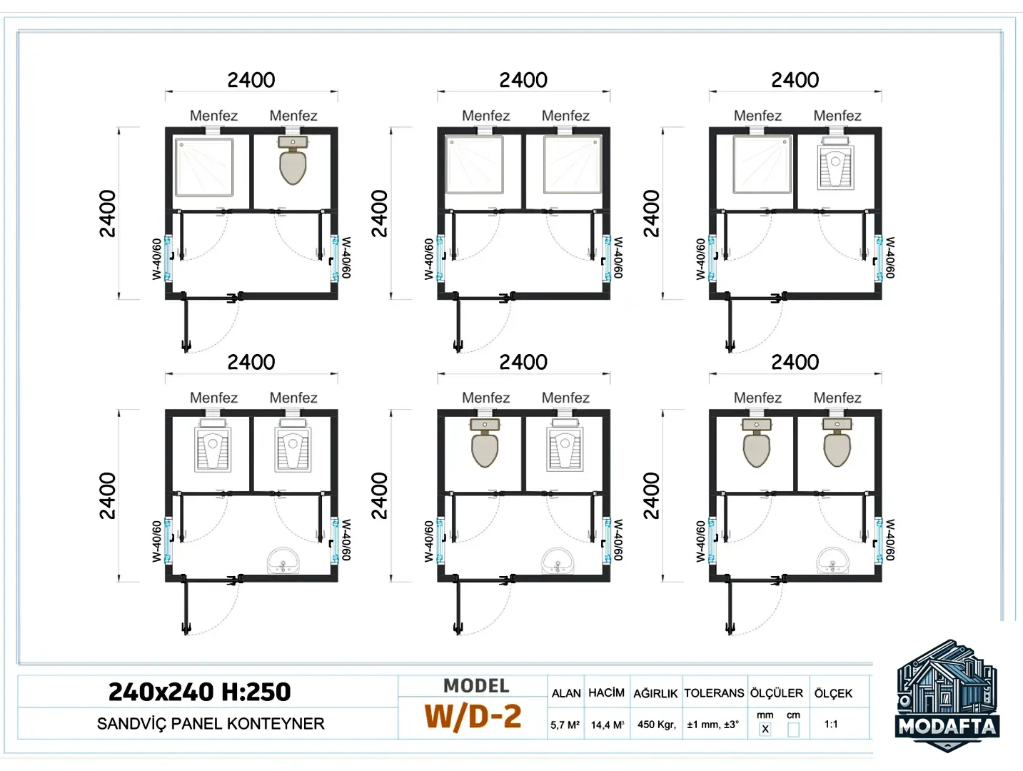 240x240 WC-Duş Konteyner