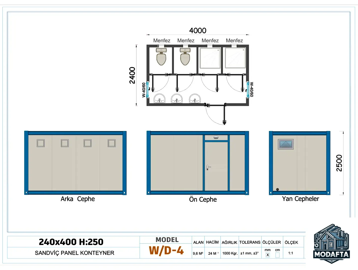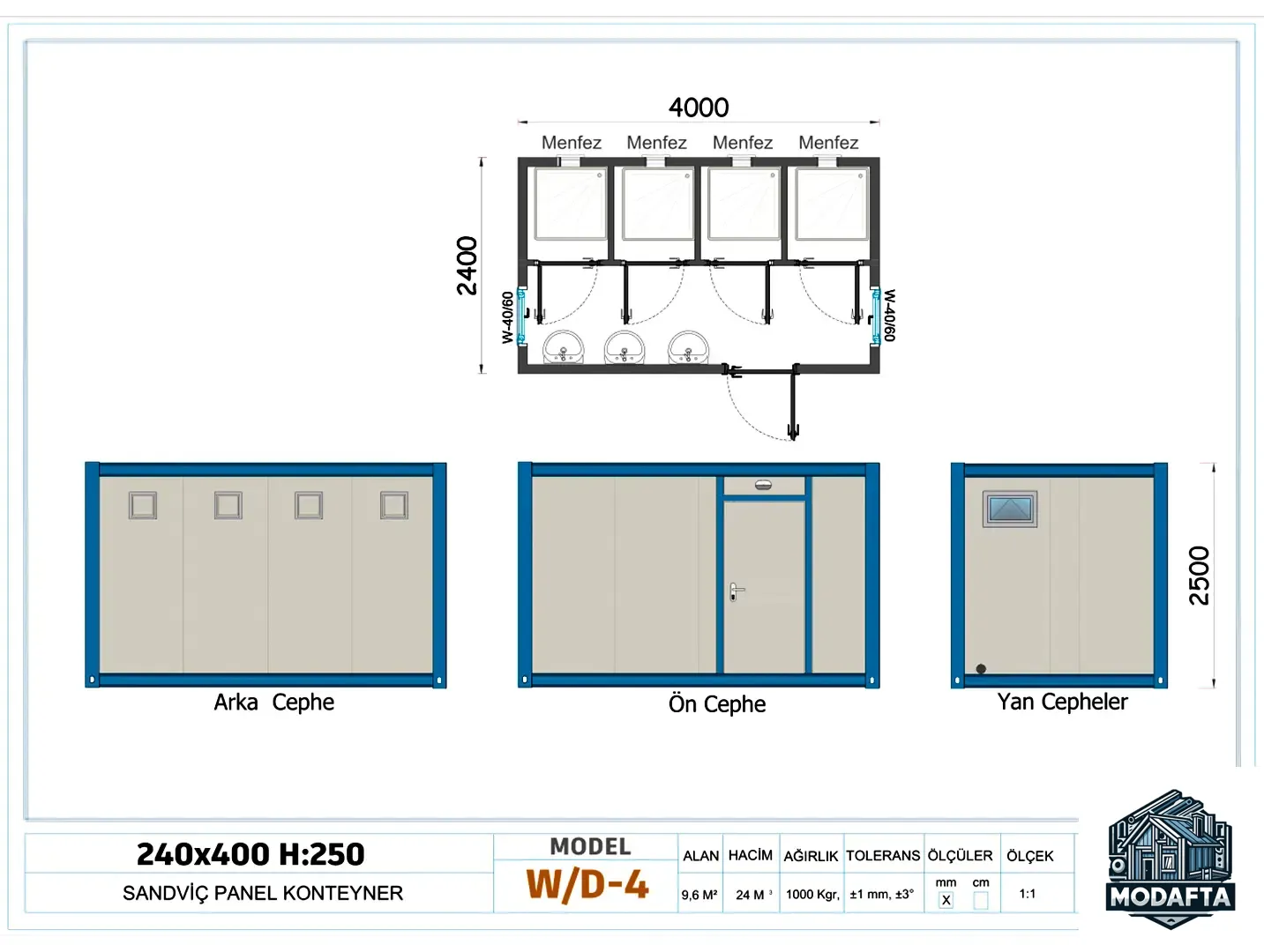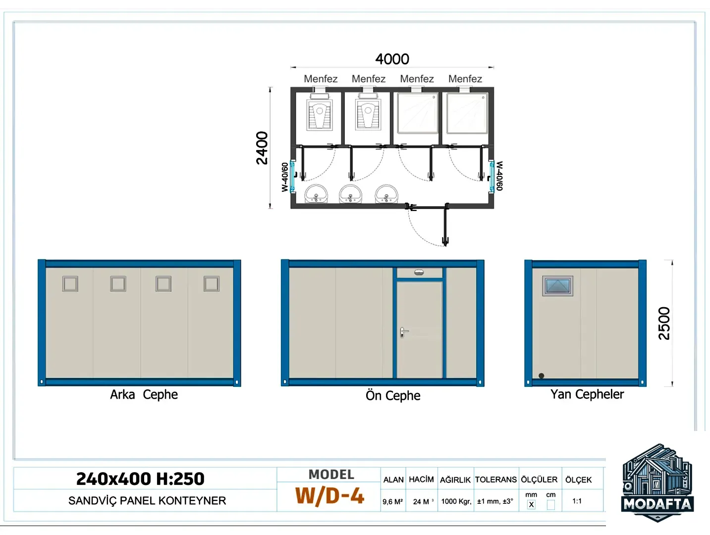 Müşterilerimizin ihtiyaçları ve uluslararası taşıma standartları dikkate alınarak tespit edilen çok sayıda model ve ölçü standartlarından biri tam da sizin için hazırlanmıştır. Klasik demonte konteyner üretim standardı 230x595 iken bizde 3x7 konteyneri tam demonte üretim gerçekleştiren bir firmayız. Bu durum benzerlerine göre 7 metrekare daha geniş imkanıyla üstün kılmaktadır.