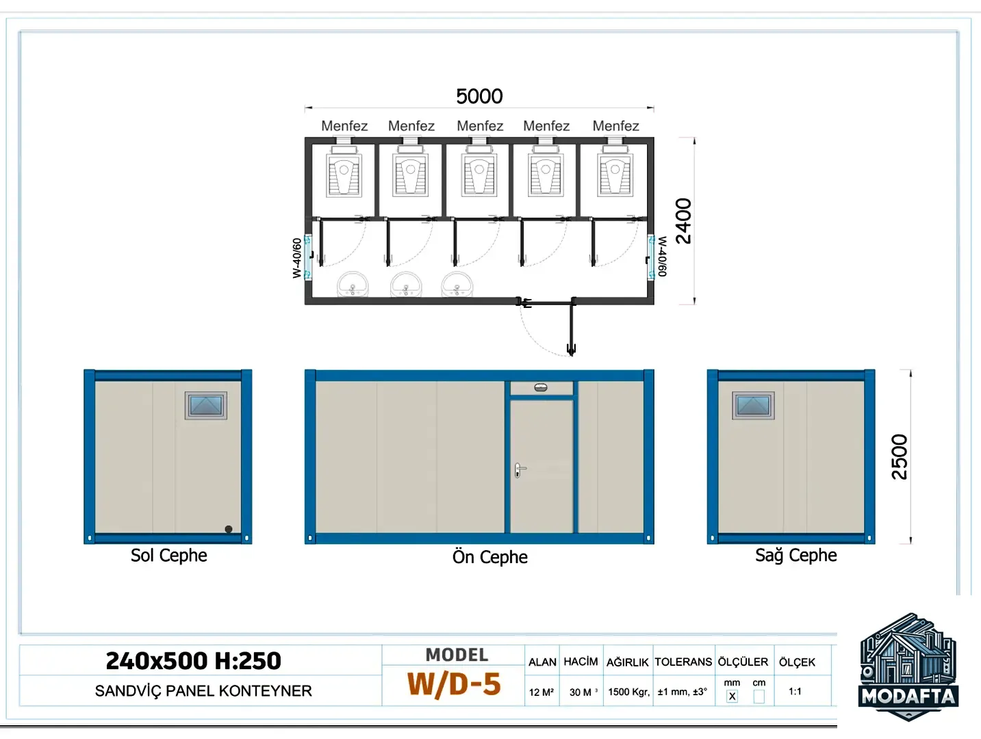 Müşterilerimizin ihtiyaçları ve uluslararası taşıma standartları dikkate alınarak tespit edilen çok sayıda model ve ölçü standartlarından biri tam da sizin için hazırlanmıştır. Klasik demonte konteyner üretim standardı 230x595 iken bizde 3x7 konteyneri tam demonte üretim gerçekleştiren bir firmayız. Bu durum benzerlerine göre 7 metrekare daha geniş imkanıyla üstün kılmaktadır.