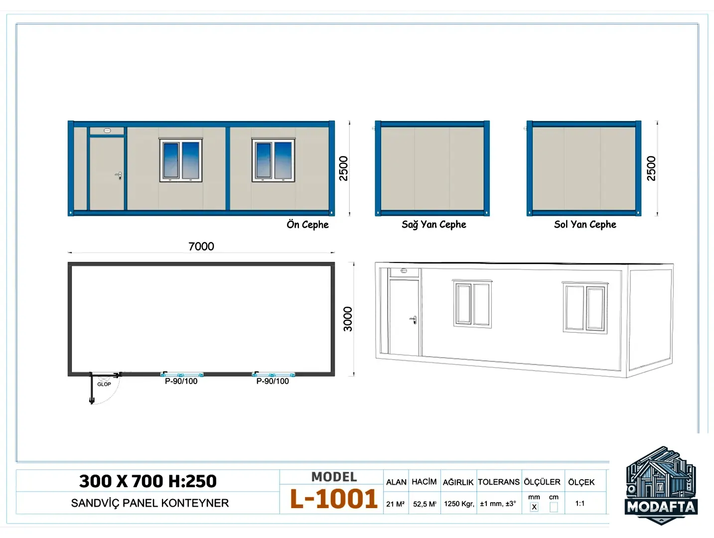Müşterilerimizin ihtiyaçları ve uluslararası taşıma standartları dikkate alınarak tespit edilen çok sayıda model ve ölçü standartlarından biri tam da sizin için hazırlanmıştır. Klasik demonte konteyner üretim standardı 230x595 iken bizde 3x7 konteyneri tam demonte üretim gerçekleştiren bir firmayız. Bu durum benzerlerine göre 7 metrekare daha geniş imkanıyla üstün kılmaktadır.