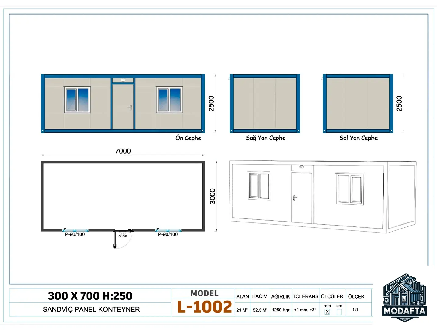 Müşterilerimizin ihtiyaçları ve uluslararası taşıma standartları dikkate alınarak tespit edilen çok sayıda model ve ölçü standartlarından biri tam da sizin için hazırlanmıştır. Klasik demonte konteyner üretim standardı 230x595 iken bizde 3x7 konteyneri tam demonte üretim gerçekleştiren bir firmayız. Bu durum benzerlerine göre 7 metrekare daha geniş imkanıyla üstün kılmaktadır.