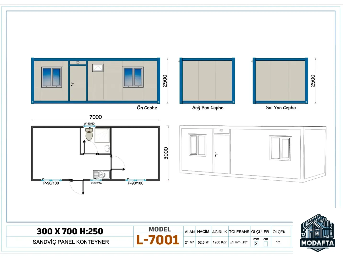 Müşterilerimizin ihtiyaçları ve uluslararası taşıma standartları dikkate alınarak tespit edilen çok sayıda model ve ölçü standartlarından biri tam da sizin için hazırlanmıştır. Klasik demonte konteyner üretim standardı 230x595 iken bizde 3x7 konteyneri tam demonte üretim gerçekleştiren bir firmayız. Bu durum benzerlerine göre 7 metrekare daha geniş imkanıyla üstün kılmaktadır.