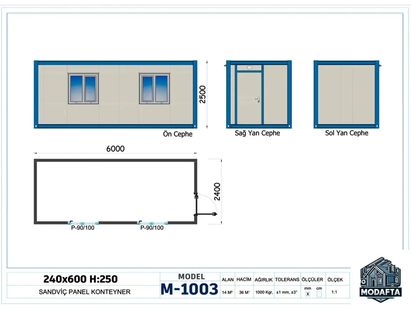 Müşterilerimizin ihtiyaçları ve uluslararası taşıma standartları dikkate alınarak tespit edilen çok sayıda model ve ölçü standartlarından biri tam da sizin için hazırlanmıştır. Klasik demonte konteyner üretim standardı 230x595 iken bizde 3x7 konteyneri tam demonte üretim gerçekleştiren bir firmayız. Bu durum benzerlerine göre 7 metrekare daha geniş imkanıyla üstün kılmaktadır.